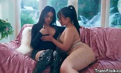 Transgender Princess hotties Aly Sinclair and Hazel Tucker share one cock