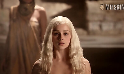 Taking a hot tub blonde babe Emilia Clarke exposes her lovely jummy booty