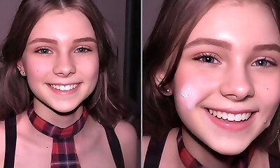 Hot student does a deep facehole fellatio and gets a big dose of cum on her face