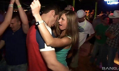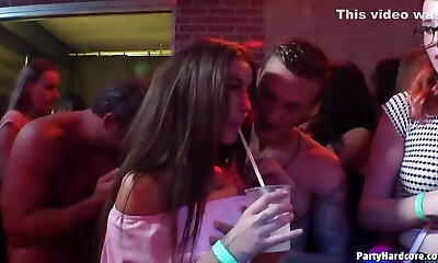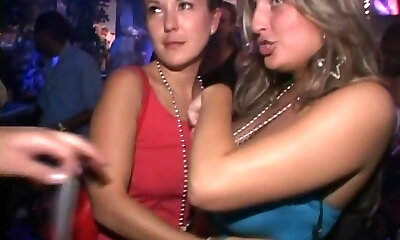 Happy gals in brief skirts never mind sucking and railing dicks in the club