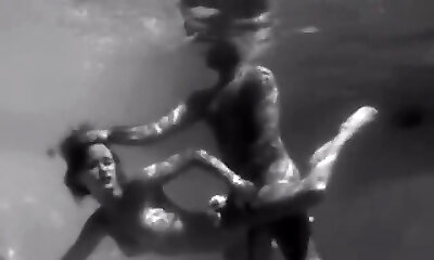 Naked dark-hued babe Lala Ivey is swimming in the pool before a crazy fuck-a-thon with her white neighbor